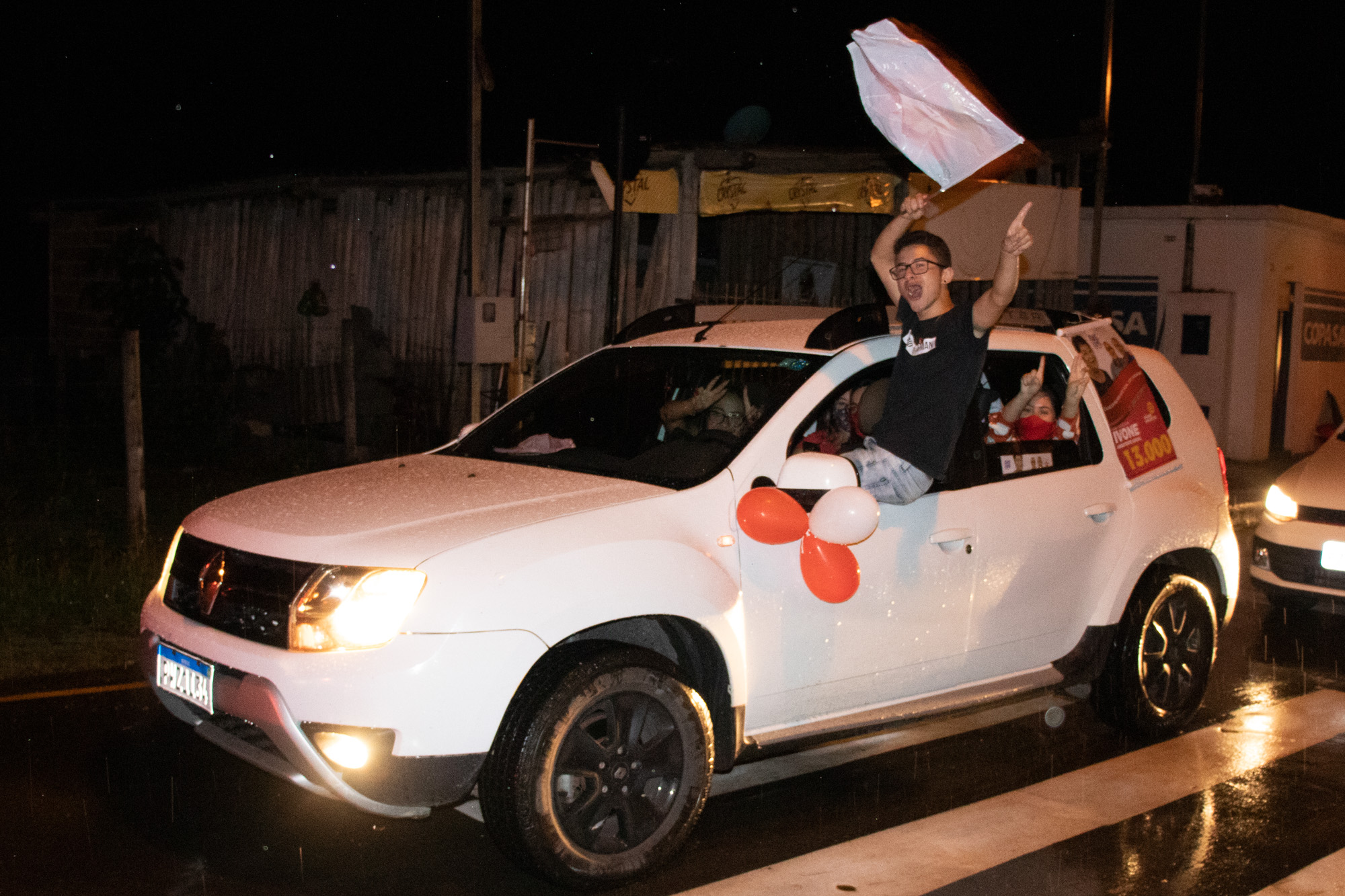 A carreata contou com a participação de caminhões e até um trator com uma "batucada", sendo os candidatos recebidos com sinalizadores nas cores do partido.